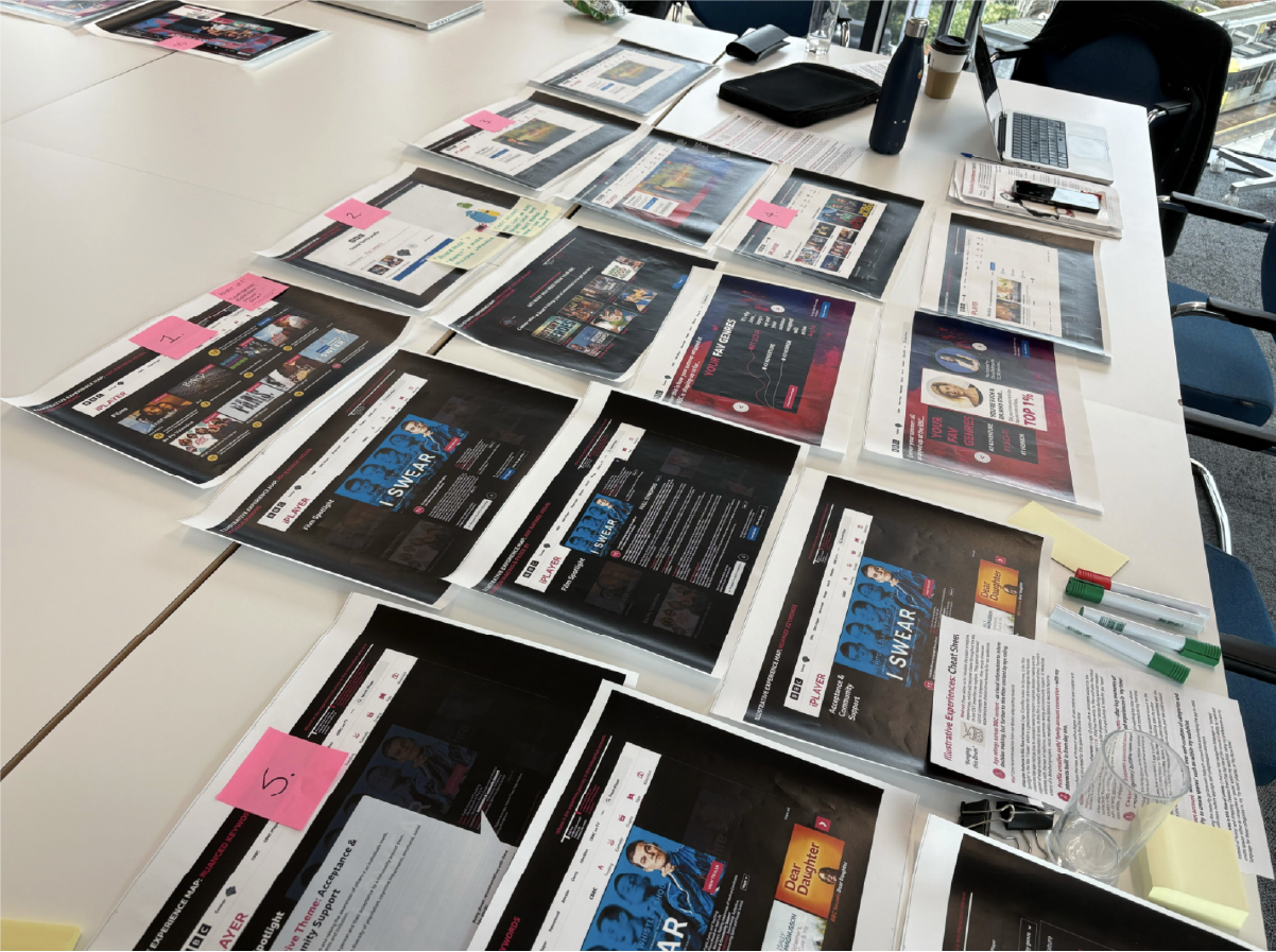 Carrying-out contextual interviews with internal supply chains, roles and tooling. From commissioners of programs, to production, compliance, editorial & curation. Getting close to productions end-to-end ranging from Glastonbury to The Traitors.